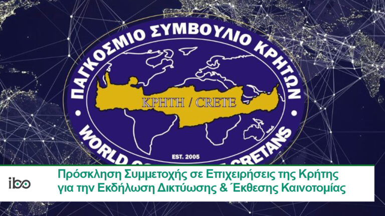 Ενημέρωση Πρόσκληση Συμμετοχής σε Επιχειρήσεις της Κρήτης για την Εκδήλωση Δικτύωσης & Έκθεση Καινοτομίας – Συνέδριο Παγκοσμίου Συμβουλίου Κρητών 2026 | Χανιά, 23 Ιουλίου 2026 15/10/2025