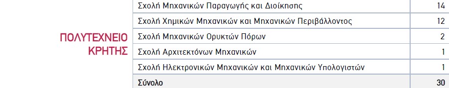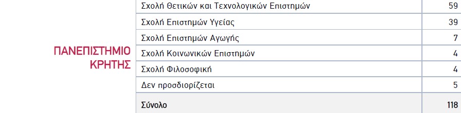Κατανομή νέων διδακτόρων ανά ΑΕΙ, Σχολή στη Περιφέρεια Κρήτης
