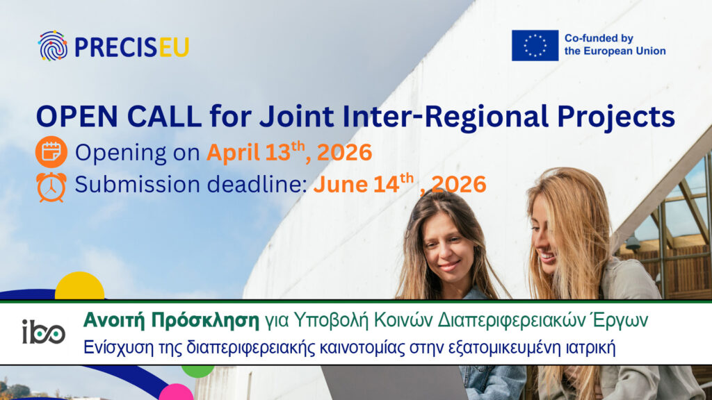 Το έργο PRECISEU ανακοινώνει την έναρξη Ανοιχτής Πρόσκλησης για την υποβολή Κοινών Διαπεριφερειακών Έργων (Joint Interregional Projects – JIPs), η οποία θα ανοίξει στις 13 Απριλίου 2026.